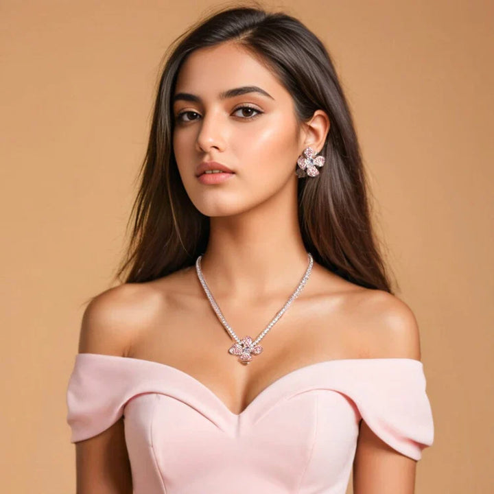 Elevate your style with the Liana Necklace Set from the Pink Glitterati Collection. This expertly crafted set features delicate design elements in a soft pink hue, offering a refined yet striking accessory for any occasion. Perfect for adding a subtle shimmer and a touch of elegance, it complements both casual and formal wear with ease. Experience the blend of craftsmanship and modern fashion in this versatile necklace set.